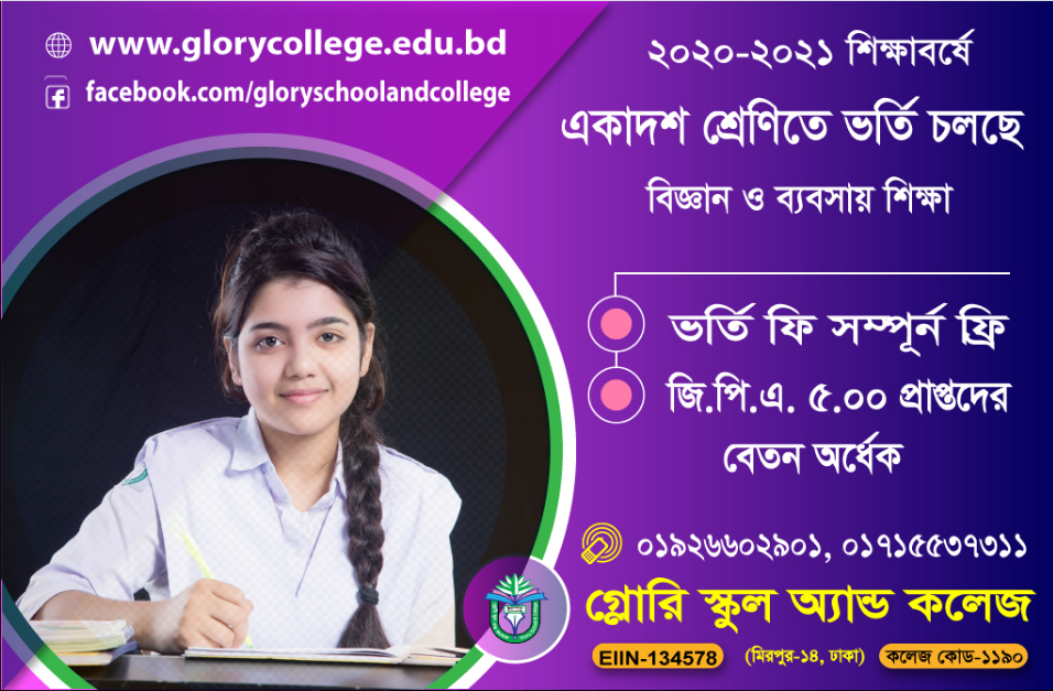 M-12, Glory School & College,Mirpur-14, Kafrul, Dhaka.
